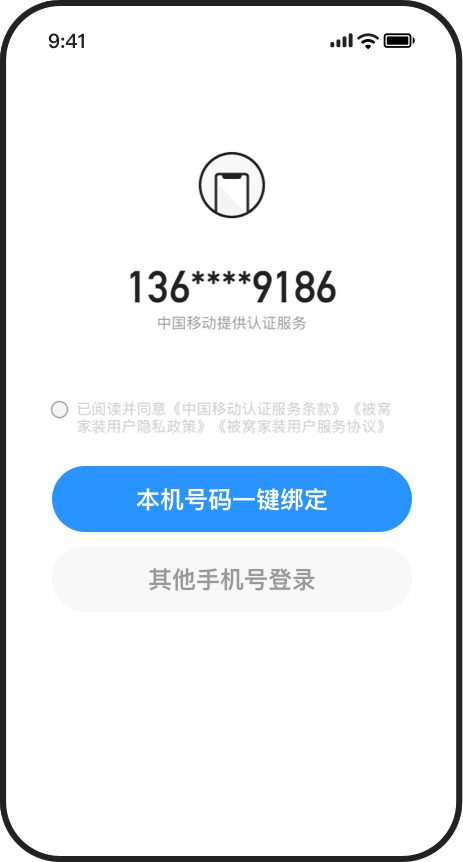 使用需登录功能时,需要账号绑定进行实人认证,对账号进行账号确认、账号绑定,需本机号码校验防篡改