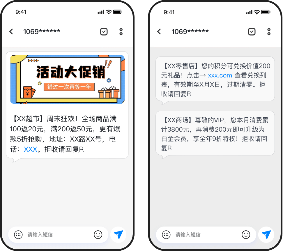 零售企业将这些促销信息以短信的方式发给客户以便到店里消费。可以通过转发有奖、凭短信享受促销优惠等来统计促销效果